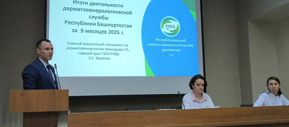 В своём выступлении он отразил основные итоги деятельности дерматовенерологической службы Республики Башкортостан, Республиканского кожно-венерологического диспансера за 9 месяцев 2025 года. Сообщил о состоянии заболеваемости инфекциями, передаваемыми половым путём (ИППП), в республике. Обозначил мероприятия, направленные на дальнейшее снижение заболеваемости ИППП. Отразил работу по проведению телемедицинских консультаций. Дал анализ по работе с обращениями граждан, поступивших в систему «Инцидент Менеджмент».