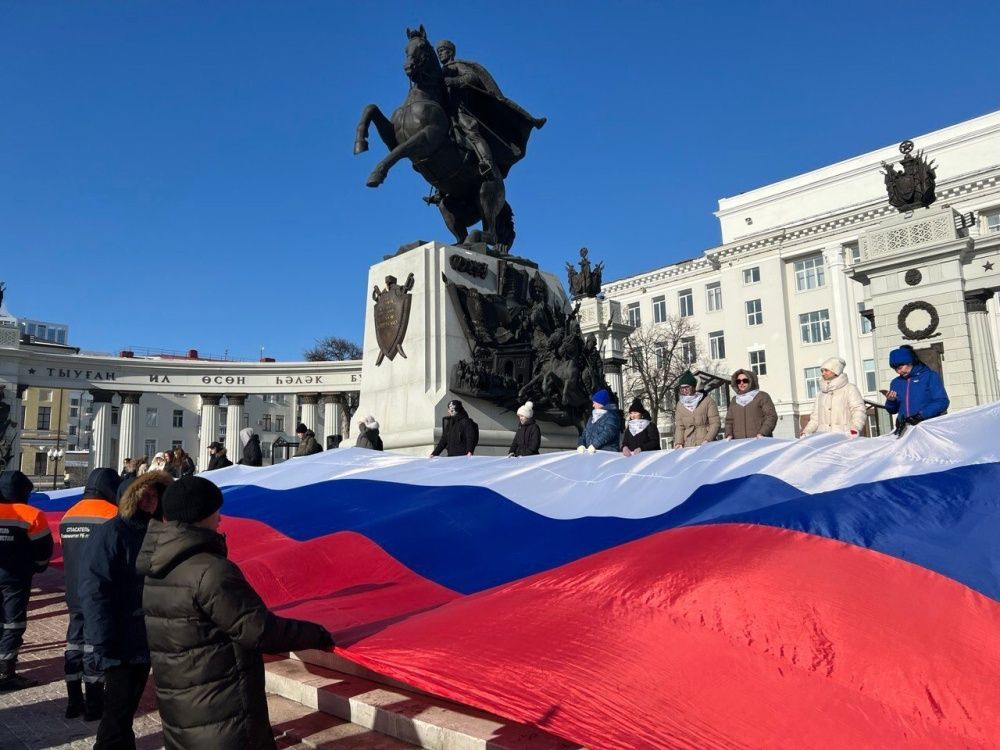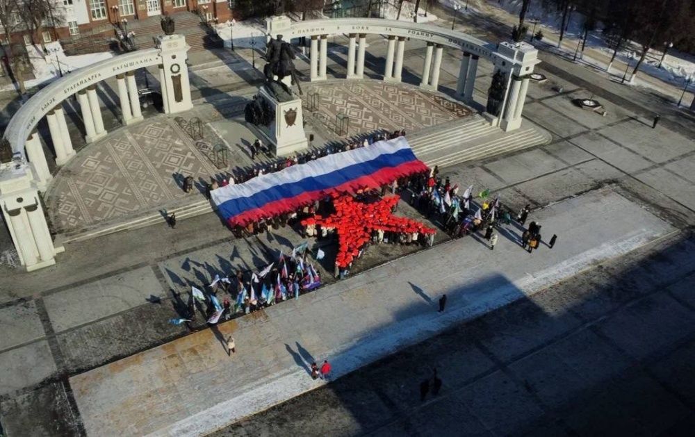 Это торжественное мероприятие было организовано в поддержку военнослужащих, которые в настоящее время защищают Родину. Участники флешмоба возложили цветы к памятнику, выстроились в форме пятиконечной красной ЗВЕЗДЫ и развернули полотнища Флага России.